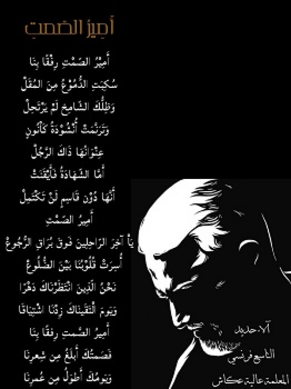 الشرقية كانون الثاني 3, 2023 admin أميرُ الصمتِ أمير الصمت بقلم التلميذة ألاء حديد من الصف التاسع فرنسي، بمناسبة الذكرى السنوية الثالثة لشهادة الحاج قاسم سليماني.